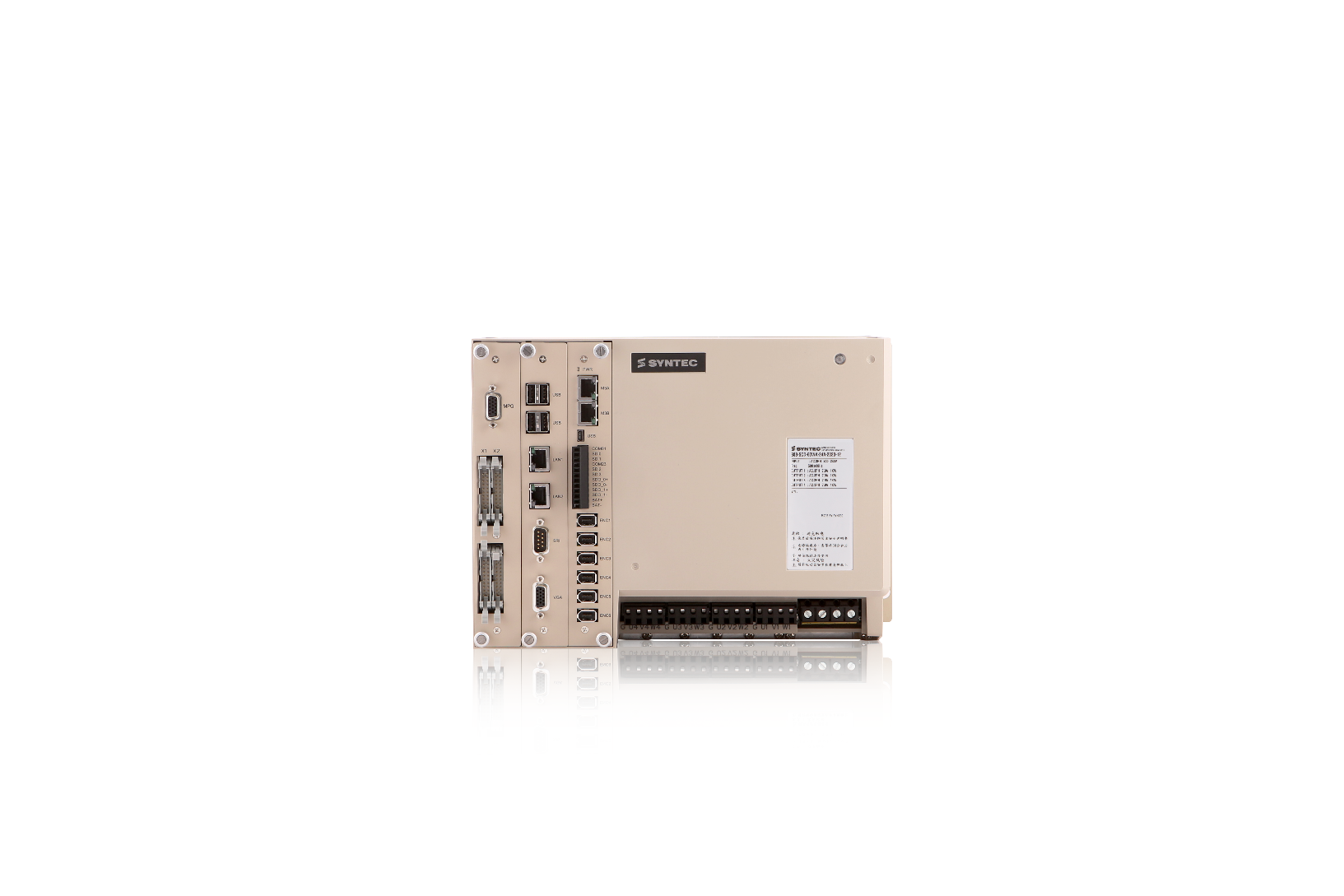 新代驱控一体机配备Mechatrolink-III串行控制与4轴1kW伺服驱动,绝对式编码器读取,除有效提升加工的平滑性和通讯抗干扰性,避免控制驱动选配问题,使用前不需寻原点,且硬件上节省电控配线空间,内建I/O、VGA屏幕显示和搭载双网络孔,可透过M3扩充轴数。