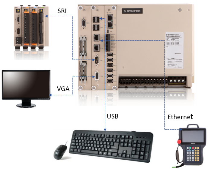 -自备32I/32O或16I/8O接点,且可透过新代专用通讯协议SRI串接FC I/O模块,满足I/O多点需求-驱控一体内建多种通讯接口,支持RJ45、RS485、usb和SRI。