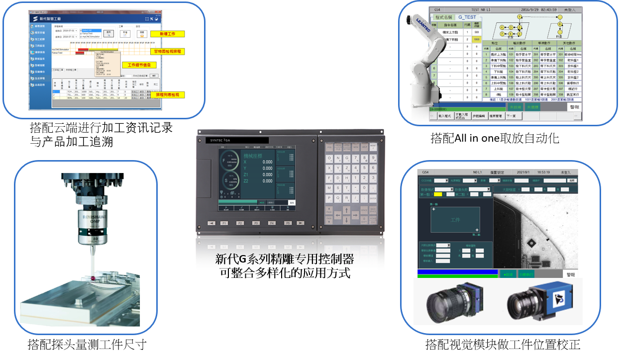 可搭配视觉模块、探头量测、机械手等设备以及云端整合,大大提升产量与良率。